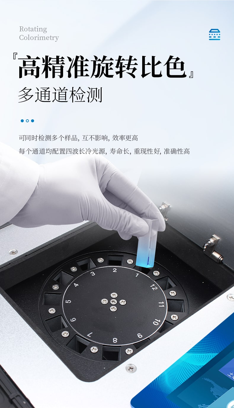 3、12個旋轉檢測通道,一次性可快速檢測12個樣品,極大提升檢測效率,降低檢測成本。